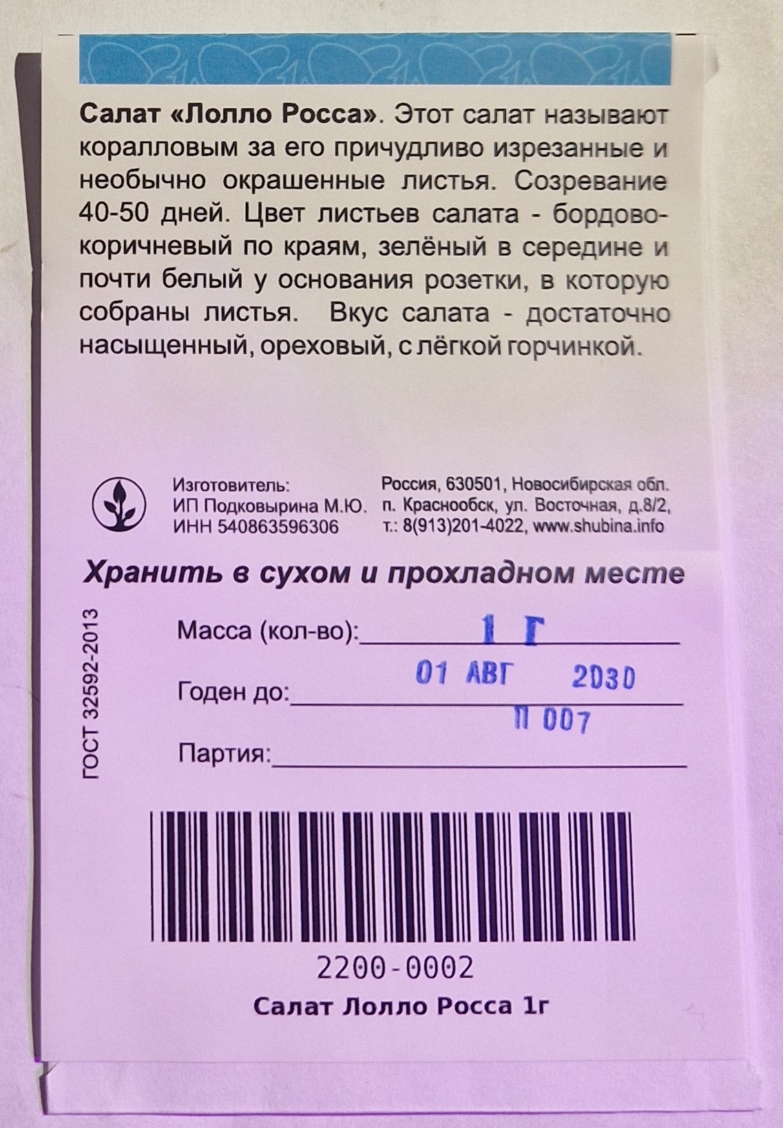 Лолло росса иногда называют «коралловым» салатом, и действительно, его причудливо изрезанные и необычно окрашенные листья напоминают коралловые рифы (калоризатор). Созревание 40-50 дней. Цвет листьев салата - бордово-коричневый по краям, зелёный в середине и почти белый у основания розетки, в которую собраны листья. Лолло росса относится к так называемым «мягким» салатам, он придаёт объём блюдам, как правило - салатам. Вкус салата - достаточно насыщенный, ореховый, с лёгкой горчинкой.