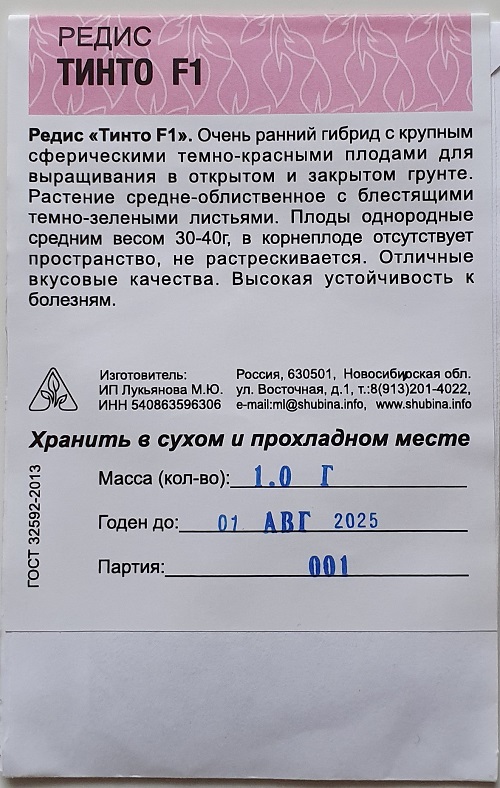 Семена редиса Тинто F1
